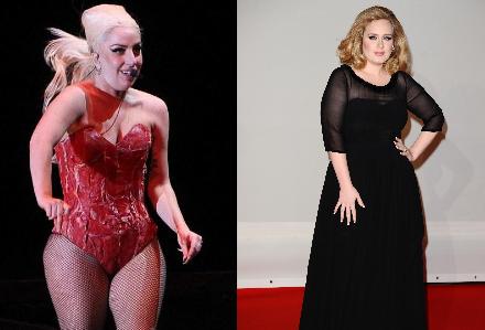 LADY GAGA GRASSA E ADELE GRASSA – Sono due pop star, Adele e Lady Gaga, così famose e ricche entrambi, ma così diverse nella vita privata. Entrambe hanno venduto milioni di dischi, ma la loro storia è molto diversa. Adele è figlia di una mamma operaia e di un padre marinaio mai conosciuto, è cresciuta in un quartiere malfamato ed è diventata famosa grazie ad un video caricato in rete, girato con il suo telefonino in cameretta. Lady Gaga è un personaggio creato per stupire, un animale da palcoscenico che ha iniziato la sua carriera con spettacoli di Burlesque. Adele è grassa, tra la musica e il mangiare, lei preferisce il cibo; Lady Gaga è una cantante che gioca con la sua immagine, ma anche lei ultimamente ha dovuto fare i conti con la bilancia e con i suoi 13 kg di troppo.