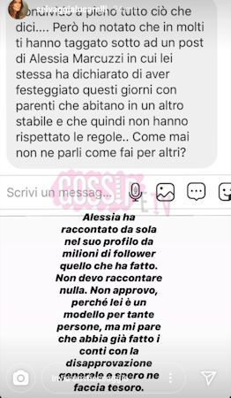 Selvaggia non ha parlato sui suoi social del caso Marcuzzi, ma per un motivo preciso. Questa è la sua risposta a chi glielo ha fatto notare: “Alessia ha raccontato da sola nel suo profilo da milioni di follower quello che ha fatto. Non evo raccontare nulla. Non approvo, perché lei è un modello per tante persone, ma mi pare che abbia già fatto i conti con la disapprovazione generale e spero ne faccia tesoro”.