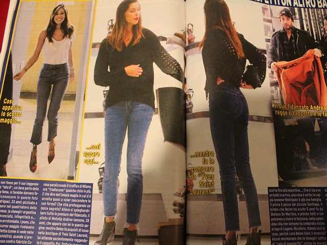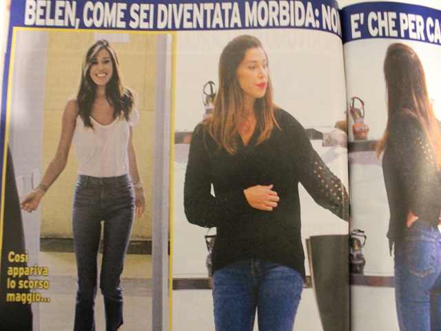 Belen è incinta e per questo avrebbe rinunciato alla conduzione del Grande Fratello. Dopo l’insinuazione pubblicata su Nuovo Tv, un altro settimanale – Grand Hotel – mostra le foto del presunto pancino. Negli scatti pubblicati dalla rivista (e che trovate più in basso), la Rodriguez appare ingrassata, decisamente più rotonda del solito. Pizzicata a fare compere nel quadrilatero della moda milanese, la showgirl argentina appare più morbida. I jeans che indossava solo lo scorso maggio appaiono ora più stretti. È il risultato di qualche abbuffata di troppo o la conduttrice di Tu si que vales è davvero in dolce attesa? Come se non bastasse, il settimana osserva che all’uscita dal negozio la sorella di Cecilia e Jeremias è tenuta d’occhio dal fidanzato Andrea Iannone. Il pilota riserva alla compagna premure e attenzioni: mentre lei fa acquisti di lusso nella boutique di Yves Saint Laurent, lui attende pazientemente reggendole il cappotto. Poi, finiti gli acquisti, Iannone scorta Belen fino alla macchina. Solo gentilezza d’altri tempi o c’è un piccolino in grembo da proteggere?