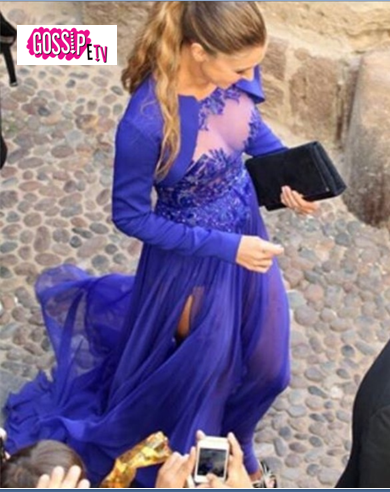 Proprio come a Sanremo 2012, quando mostrò la famosa farfallina, Belen Rodriguez ruba la scena alla collega e amica Elisabetta Canalis. Se durante un programma televisivo una certa rivalità tra prime donne è ben accetta, la stessa regola non vale durante un matrimonio. E’ quanto avvenuto alle nozze di Elisabetta Canalis, l’ex velina di Striscia la Notizia, che ieri è diventata ufficialmente la moglie del chirurgo americano Brian Perri. La cerimonia (clicca qui per vedere tutte le foto di Gossip e Tv in esclusiva!) si è celebrata ad Alghero, in Sardegna, regione della bella Elisabetta. Quest’ultima, come tutte le spose, ha invitato al suo grande giorno sia i famigliari che gli amici, tra cui spiccava proprio Belen Rodriguez. L’argentina si è presentata al matrimomio dell’amica accompagnata dall’inseparabile marito Stefano de Martino, con il quale a breve festeggerà il primo anniversario di nozze. Belen, appena giunta fuori la cattedrale di Alghero, è stata acclamata come una vera diva dalla folla, anche se il suo abito ha lasciato perplessi in parecchi. Lungo, color blu elettrico, con trasparenze sul corpetto che lasciavano ben poco spazio all’immaginazione e una mutandona in bella vista che mostrava le toniche gambe. Un abito bellissimo, ma sicuramente non adatto ad un matrimonio, che ha pertanto scatenato il web tra chi ha approvato la scelta di Belen e chi invece l’ha definita inappropriata.