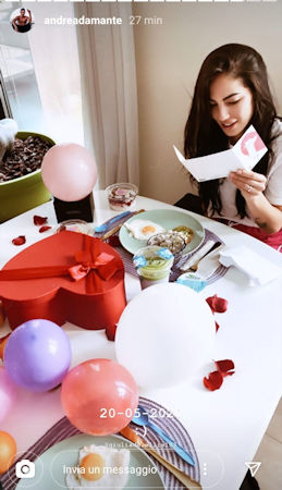 Il primo gesto è arrivato in prima mattina, quando Giulia ha postato una foto di un mazzo di rose rosa e di sicuro è stato un regalo del suo Dama. Ma non è tutto. In una foto pubblicata tra le stories su Instagram da Andrea si vede Giulia intenta a leggere un biglietto, con un sorriso stampato sul volto. Sul tavolo davanti a lei c’è una scatola a forma di cuore, dei petali di rosa rossi e anche alcuni palloncini. Hanno iniziato la giornata ricordando il giorno in cui è ufficialmente iniziato il loro amore e da quando sono tornati insieme il 20 maggio è di nuovo una data importante per loro, da festeggiare. Vedremo nel corso della giornata se ci saranno altre sorprese!