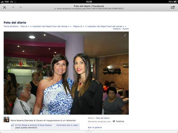 CAVANI IN BRASILE, MARIA ROSARIA OSPITE IN UN RISTORANTE – Edinson, anche se, al momento, si trova in Brasile con l’Uruguay, sembra essere stato letteralmente stregato da Maria Rosaria, alla quale qualche mese fa, ha regalato una splendida festa di fidanzamento ufficiale a casa sua (cliccate qui per leggere il resoconto della serata). Non solo, ma sembra che la loro relazione nata da alcuni mesi sia già molto importante per Cavani, il quale pare aver già parlato con i suoceri, i genitori di Maria Rosaria circa l’eventualità di una futura convivenza qualora il suo destino, l’anno prossimo, lo porti a giocare lontano dalla Campania. Dunque, anche nel caso di un trasferimento, la storia con Maria Rosaria non avrebbe nulla da temere con Cavani che ha già espresso le sue intenzioni serie nei confronti della fidanzata. Che ve ne pare?