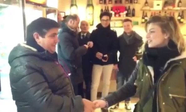 Come potete notare, oltre all’entusiasmo che trapela dalle immagini, c’è stata anche molta incredulità nello scoprire che una star, ormai internazionale come Emma, sia apparsa alle nel locale in cui gli amici di Fiorello e Marco Baldini si ritrovano quotidianamente per commentare le notizie della prime pagine dei nostri giornali. Emma, come suo solito, ha riso e scherzato con tutti stando al gioco dell’amico rapper del conduttore e proponendo, come detto, una nuova versione della sua “Amami“, dedicata alle vicende politiche che coinvolgono Renzi e Alfano, che pare aver suscitato grande ilarità sia tra presenti che presso i radioascoltatori. Anche Fiorello è rimasto piacevolmente sorpreso da Emma e non solo per via del suo straordinario talento; in più occasioni, infatti, si è soffermato a farle dei complimenti sull’aspetto fisico: “Io vorrei solo che vedeste la bellezza di Emma alle 6 del mattino” – ha detto aggiungendo di aver ricevuto una notizia inaspettata leggendo la sua scheda anagrafica: “Non sapevo la sua età ma vi posso assicurare che non dimostra gli anni che ha. Io gliene avrei dati 15 o 20” – ha poi concluso provocando la risata di Emma.