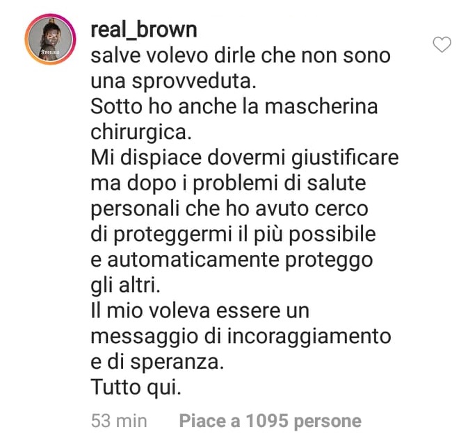 In questo periodo, Emma Marrone sta cantando, ha parlato dei concorrenti di Amici (in lutto per la scomparsa di una fan storica), ma ha dovuto anche rispondere a chi le ha riservato delle critiche pesanti. C’è chi, dopo il messaggio di Instagram, le ha dato della sprovveduta; lei ha risposto così: “Salve, volevo dirle che non sono una sprovveduta. Sotto ho anche la mascherina chirurgica. Mi dispiace dovermi giustificare, ma dopo i problemi di salute personali che ho avuto, cerco di proteggermi il più possibile e automaticamente proteggo gli altri. Il mio voleva essere un messaggio di incoraggiamento e di speranza. Tutto qui”.