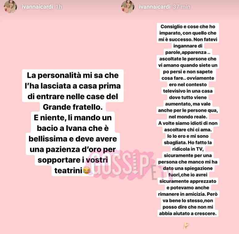 E ancora: “Gli italiani vi hanno creduto ma gli spagnoli non credono niente di uno come tuo fratello che pur di farsi conoscere ci ha provato anche con le piante in quella casa. Sappiamo tutti che se non c’è nessuno intorno a lui non esiste. La personalità mi sa che l’ha lasciata a casa”. E infine Ivana ha voluto mandare un saluto (e un bacio) a Ivana Mrazova, che “è bellissima e deve avere una pazienza d’oro per sopportare i vostri teatrini”. Probabilmente Ivana ha questo pensiero anche su Gianmarco, e quindi su Luca, perché il minore degli Onestini non ha voluto incontrarla dopo il Gf per darle una spiegazione del suo comportamento, come ha scritto nella sua ultima storia.
