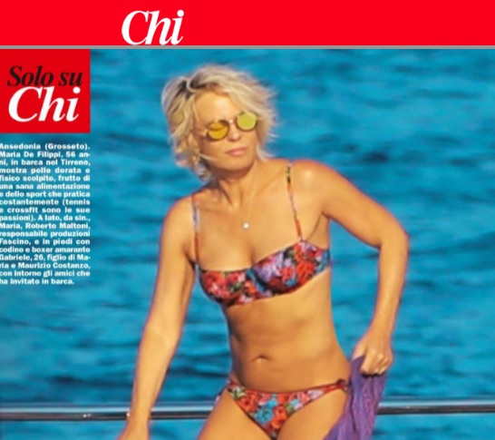 È una Maria De Filippi in ottima forma quella che vediamo nelle immagini pubblicate in esclusiva da Chi. Il giornale di Alfonso Signorini, infatti, non ha potuto fare a meno di sottolineare quanto il fisico della conduttrice di Canale 5 non abbia nulla da invidiare a quello delle ventenni. Giovane, inoltre, Maria De Filippi pare essere anche nell’animo, tant’è che la stessa tra gli amici del figlio, in barca, si confonde senza alcuna difficoltà. Ma la maggiore complicità, come testimoniano le foto, Maria dimostra di averla con Gabriele. Uniti e sorridenti, infatti, non c’è uno scatto dove i due appaiono in disaccordo.