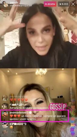 Nel bel mezzo della diretta è sbucato pure Andrea Denver! Il mancato finalista ha seguito la diretta di Adriana e Paola e ha lasciato loro un saluto. Un commento di cui però le due non si sono accorte. Ecco cosa ha scritto Denver: “Un bacio ragazze… Sempre un piacere sentire i vostri scambi”.