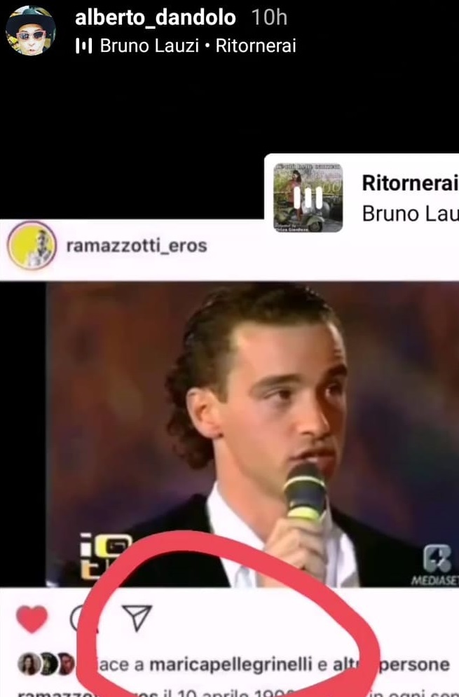 A far rumoreggiare, inoltre, il “mi piace” che l’ex Marica Pellegrinelli ha messo sotto all’ultimo video pubblicato su Instagram da Ramazzotti, e puntualmente sottolineato da Dandolo, che ha commentato il gesto condividendo la canzone Ritornerai di Bruno Lauzi. Eros e Roberta sono grandi amici o ci sarà presto qualcosa di veramente forte? Lo scopriremo fra non molto… o forse mai!