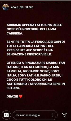 Riki fa faville in America Latina: il ringraziamento a Maria De Filippi