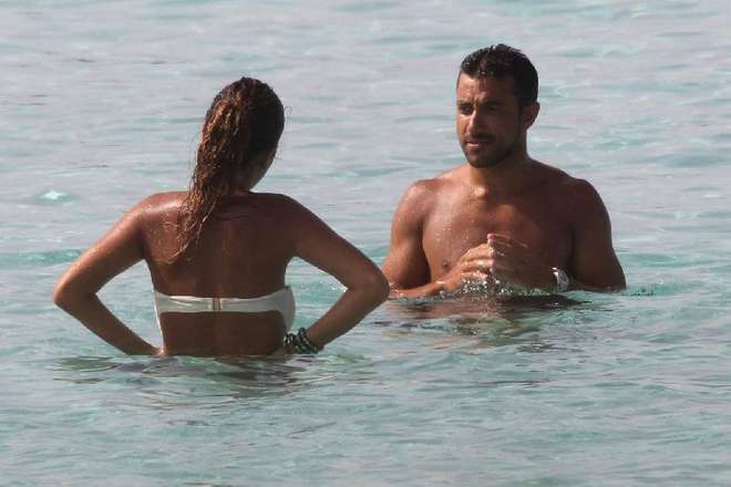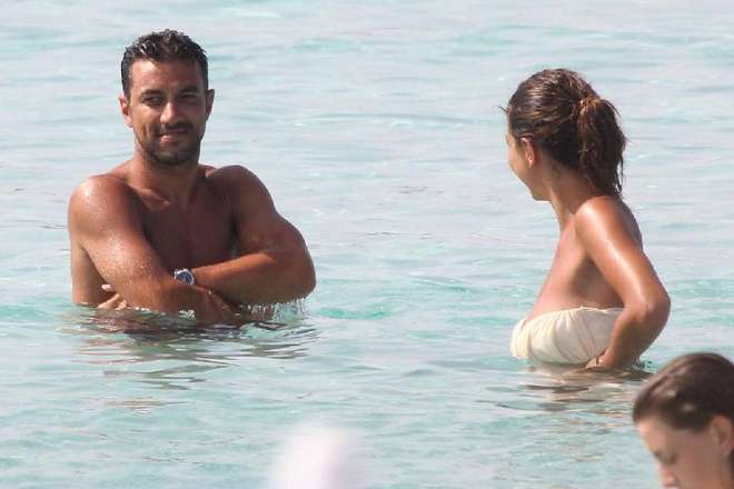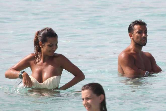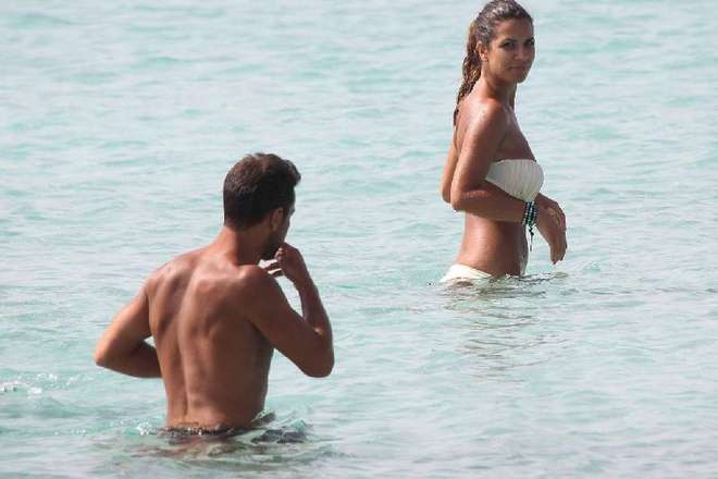 ROBERTA MORISE E FABIO QUAGLIARELLA – E’ nata una nuova coppia. Stando alle indiscrezioni del gossip Roberta Morise e Fabio Quagliarella avrebbero una relazione che stanno cercando di tenere segreta. Lei è l’ex professoressa de L’eredità nonché ex fidanzata del presentatore Carlo Conti, lui è l’asso napoletano fresco di scudetto con la sua Juventus. Si vocifera che Roberta Morise e Fabio Quagliarella si siano incontrati all’evento di Sky Calcio mercato on the beach al GrandHotel Poltu Quatu, in Sardegna, e tra i due sarebbe subito scoccata la scintilla. Nelle foto che postiamo qui sotto, Roberta e Fabio appaiono molto complici, giochi d’acqua e sguardi intensi. Al momento non si sa altro, se non che la nuova coppia del gossip italiano cerca di stare lontano dai riflettori.
