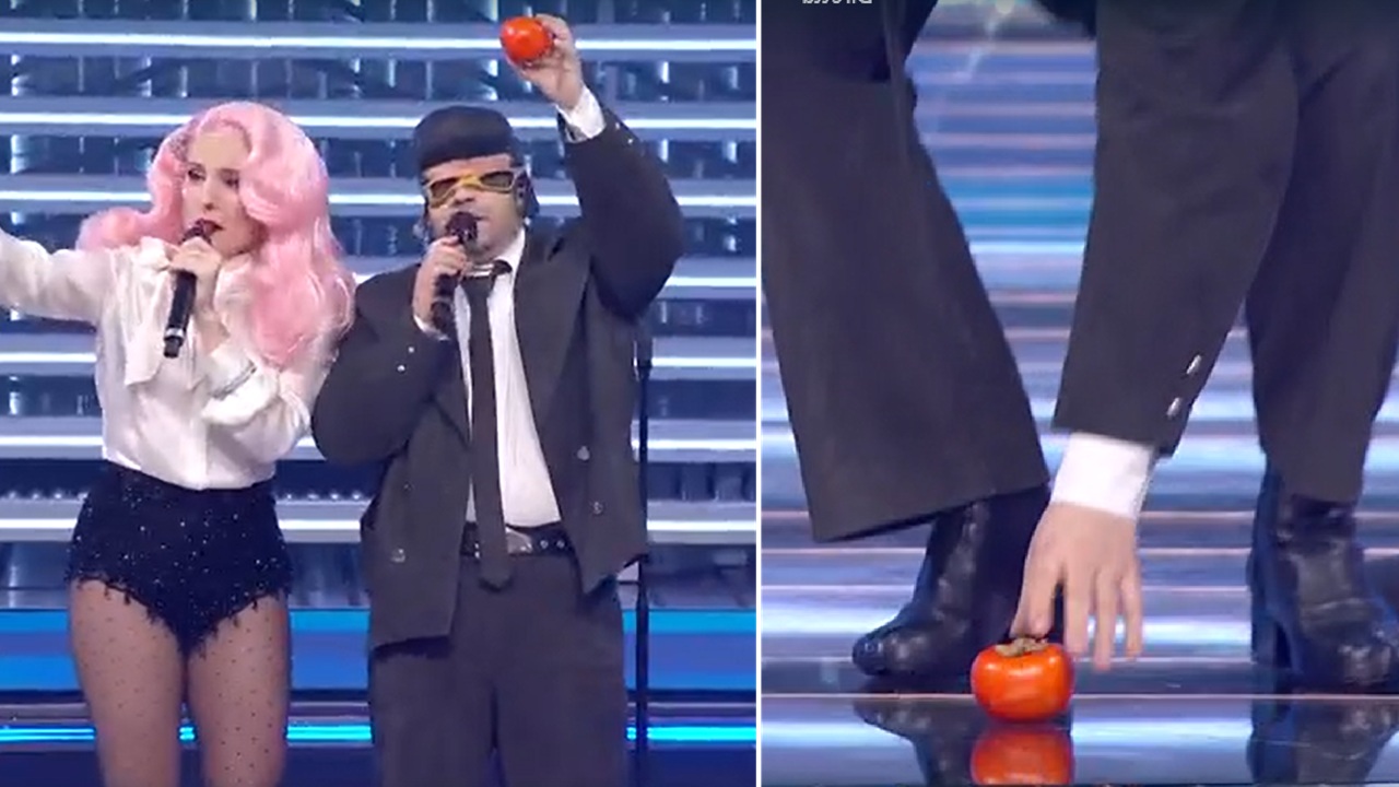 Che bravi, che voce, che spettacolo: Ditonellapiaga e TonyPitony hanno incantato l’Ariston nella serata delle cover del Festival di Sanremo 2026. Strepitoso il duetto tutto da ridere sulle note di “The lady is a Tramp”. A un certo punto è sembrato davvero di essere a Broadway. Chi pensava che Tony facesse il pazzo, si è dovuto ricredere: è stato un “agnellino” (eccezion fatta per il “folle” congedo dopo la performance). Vero che il personaggio è una “bomba atomica” che può esplodere da un momento all’altro con dichiarazioni spiazzanti e per nulla politicamente corrette (non proprio in stile sanremese), ma è pur vero che dietro alla maschera surreale di Elvis Presley 2.0 c’è un artista che sa maneggiare la musica in modo sapiente. Sul finale, però, ha piazzato una zampata “Pitonesca”, lasciando un caco sul palco. E un motivo ben preciso c’è.