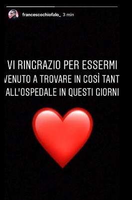 Da quando Francesco Chiofalo ha raccontato al mondo di avere un tumore al cervello gli occhi di tutti, inevitabilmente, sono stati puntati anche sulla sua ex fidanzata Selvaggia Roma. L’ex protagonista di Temptation Island, prima, durante e dopo l’intervento di Chiofalo, è stata più volte accusata dal web di aver mostrato poca sensibilità. Secondo alcuni utenti, nello specifico, Selvaggia avrebbe dovuto spendere qualche parola in più sul suo ex. Tirata in causa, e in più occasioni. lei ha allora ribadito di non sentirsi a suo agio nel palesare vicinanza a Francesco. Il motivo? Attriti e discussioni passate hanno portato i due a non chiudere pacificamente la loro relazione. Intanto, su Instagram, Francesco è ritornato a scrivere e, con un messaggio, ha aggiornato i fan sulla sua uscita dall’ospedale ed voluto ringraziare tutte le persone che gli sono state vicino in questi giorni.