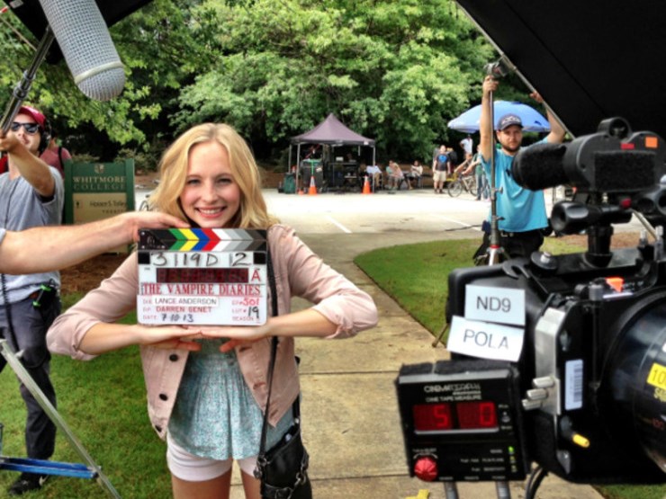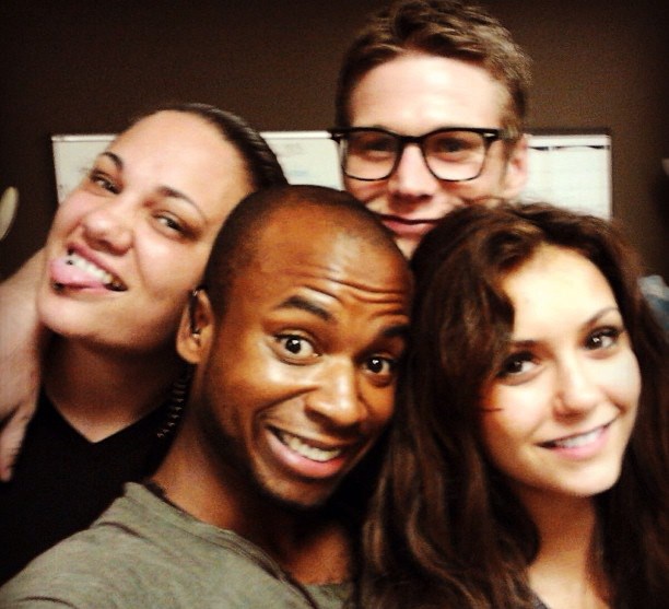 Se tutto questo non bastasse però, anche le immagini provenienti dal set hanno il loro bel da dire. Iniziamo con quella che ha mandato letteralmente in estasi tutti i fan Delena, che hanno dovuto aspettare ben quattro stagioni prima di poter vedere almeno qualche scena felice tra i due. La foto infatti immortala proprio un momento di felicità tra Damon ed Elena, dove lei sorride, probabilmente subito prima o subito dopo aver baciato Damon. Questa immagine, come molte altre, è stata pubblicata su Twitter da Joshua Butler, uno dei registi di The Vampire Diaries. Nella galleria seguente potete vedere gli attori alle prese con alcune scene di The Vampire Diaries 5 e nei loro momenti di pausa, in cui come sempre sono stati disponibilissimi a dispensare autografi e a posare con dei fortunati fan accorsi sul set.
