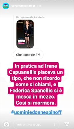 Loro hanno sempre chiarito di non aver litigato, ma di avere meno tempo per frequentarsi. Risponderebbero la stessa cosa Irene e Federica oggi? Il gossip su un presunto allontanamento fra le due è partito da Very Inutil People, che rispondendo alle curiosità dei fan ha lanciato lo scoop. Tra le stories di Instagram, infatti, qualcuno ha chiesto a Very a chi potesse riferirsi Irene Capuano in alcune sue dichiarazioni e la risposta è stata chiara: Federica Spano. Inutile dire che subito i più curiosi hanno chiesto cosa fosse successo fra le due e Very non si è tirato indietro riportando una voce che circola nell’ambiente. Ecco cosa ha scritto: “In pratica a Irene piaceva un tipo, che non ricordo come si chiami, e Federica si è messa in mezzo. Così si mormora”.