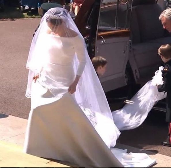 Come spiegato in una nota ufficiale diramata dal Palazzo Reale, Meghan Markle ha scelto Claire Waight Keller per il suo vestito da sposa per la sua “estetica senza tempo ed elegante, la qualità sartoriale impeccabile e il mood rilassata. La neo duchessa di Sussex voleva sottolineare il successo di un importante talento britannico che è stato il direttore di tre case di moda influenti a livello mondiale: Pringle of Scotland, Chloé e ora Givenchy. L’abito fa riferimento ai codici dell’iconica casa di Givenchy e mette in mostra l’abilità artigianale del suo famoso atelier di alta moda parigino, fondato nel 1952. Le linee pure del vestito sono il risultato di sei complesse cuciture”.
